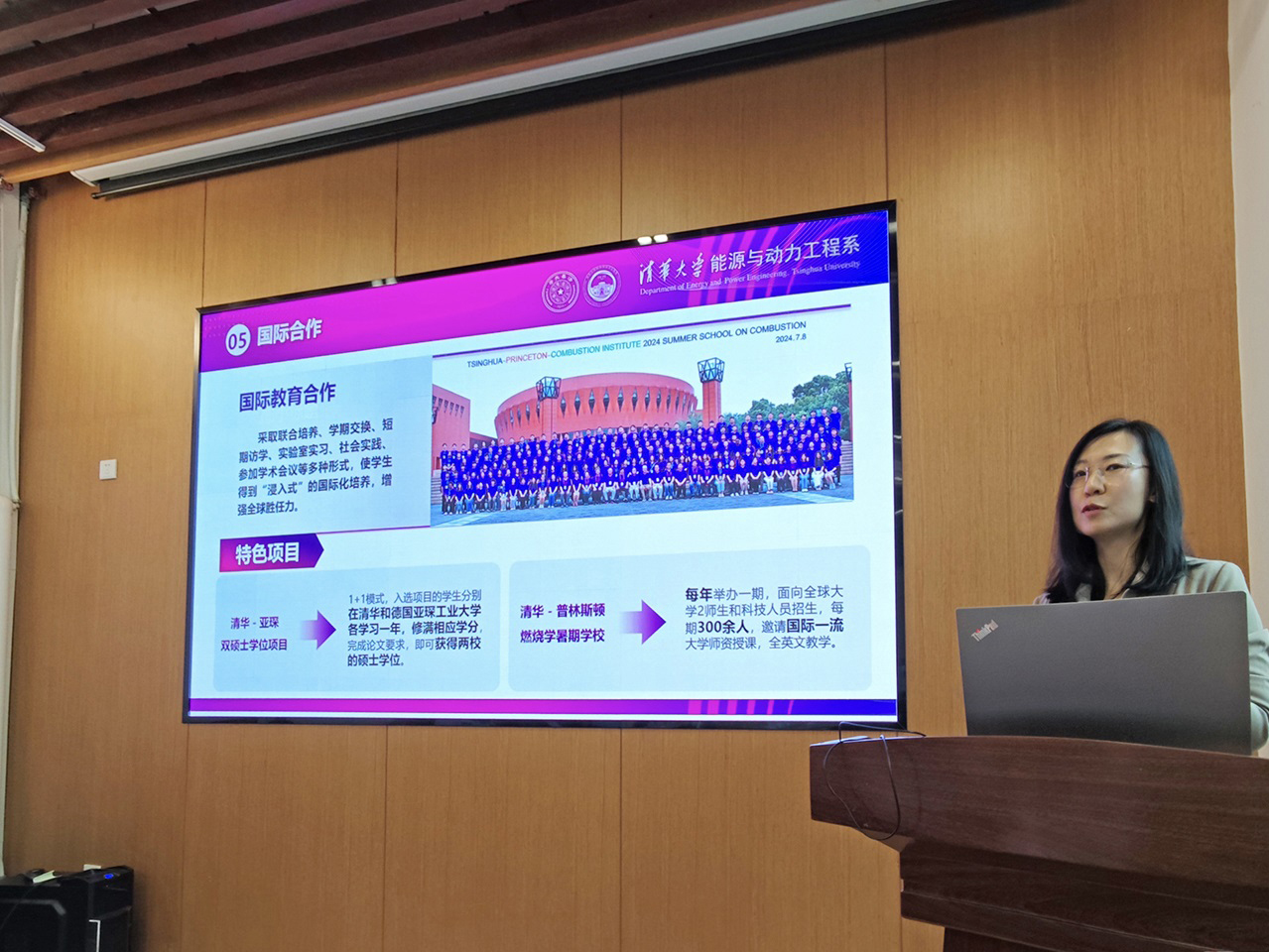 胥蕊娜主任从历史沿革、学科概况、师资力量、科学研究、国际合作等方面介绍了清华大学能动系的总体情况。谭磊副书记从党建、导学、实践、宣传、育人等方面介绍了研究生管理体系,并重点介绍了本科生培养环节的“一课二社三赛”科创培养体系和聚焦世界能源热点的海外实践工作。史翊翔书记主持研讨环节,双方就党建业务融合、拔尖人才培养模式探索、学位点建设等方面问题展开了深入交流。