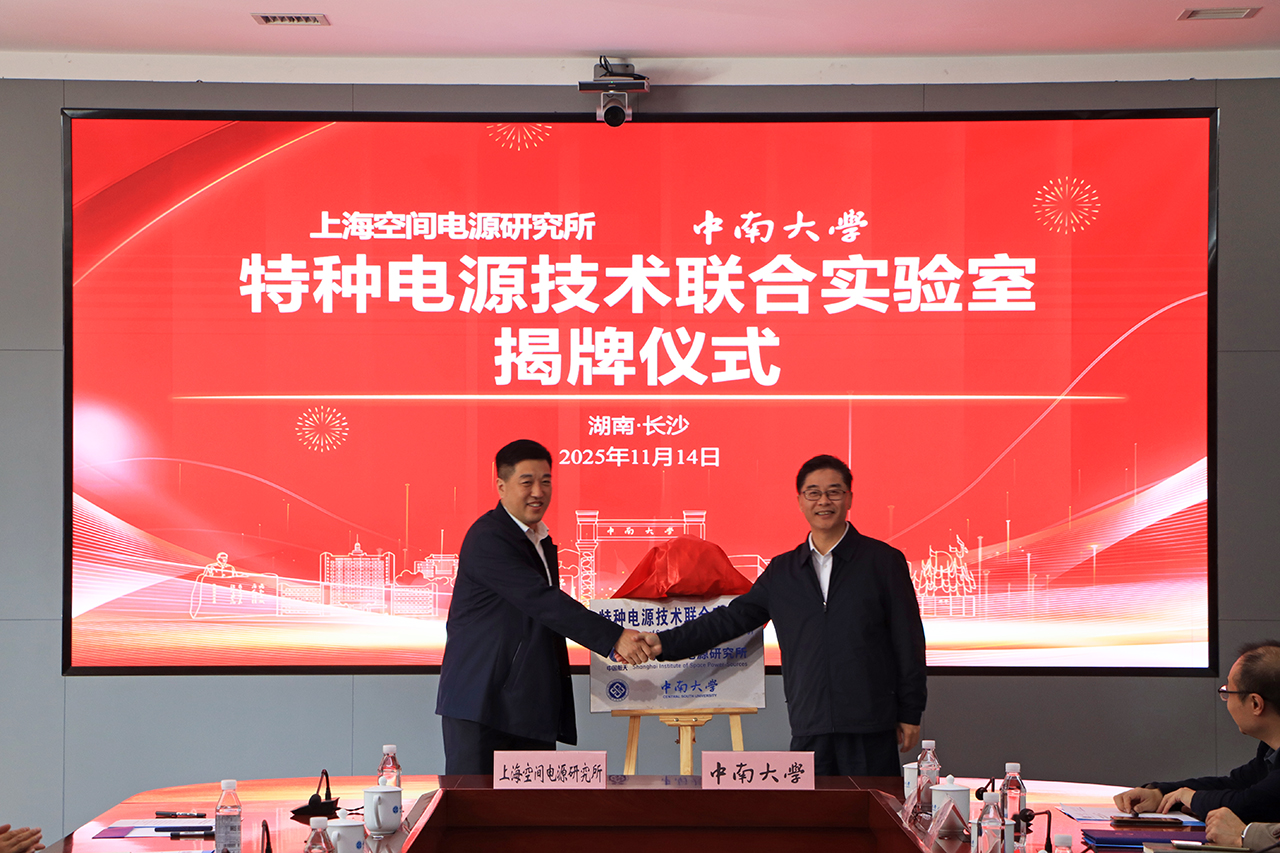 11月14日上午,由上海空间电源研究所和中南大学共建的特种电源技术联合实验室签约及揭牌仪式在中南大学举行。上海空间电源研究所所长张永立,中南大学党委副书记、纪委书记彭立威,相关部门负责人出席仪式。双方签署实验室联合建设实施协议并共同揭牌。仪式由能源科学与工程学院院长孙志强主持。